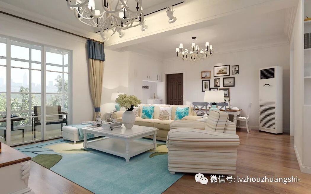 简洁温馨的80平田园风两室一厅装修效果图